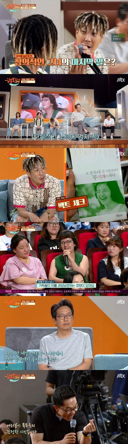 오늘의 주제는 '바보'였고, 관객들의 이야기를 들어봤다. 서로에게 고맙다면서 애정을 과시한 중년부부 얘기였다. 하하는 "결혼 전에 부모님 모습 보고, 서로 고마워하며 살자고 말한적 있다. 근데 요즘 미안하단 말 자주한다"며 자신을 돌아보면서 "고맙단 말 한마디가 사랑, 세월이 느껴진 세글자였다. 그 안에 진심이 느껴졌다"며 뭉클해했다.