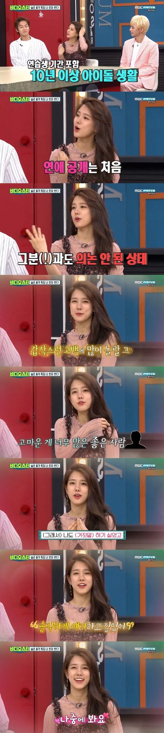 이어 "아이돌 생활을 너무 오래해서 이런 걸 밝히는 게 처음이기도 하다. 그 분과 의논도 안 한 상태다. 뭔가 (아이돌 생활 메뉴얼 때문에) 사랑하는 사람한테 상처를 주는 게 미안하다"며 데뷔 후 열애 사실을 처음으로 털어놨다.