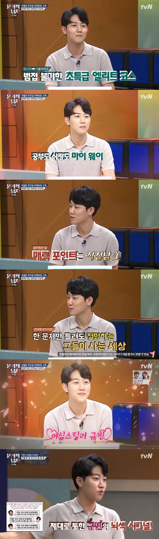 지난달 31일 방송된 tvN 예능 ‘문제적 남자’에는 비연예인 이규빈이 출연해 뇌섹남스러운 면모를 자랑했다. 문제를 부여받으면 맞히기 위해 끝까지 노력하는 모습에서 열정으로 키운 근성을 느낄 수 있었다.