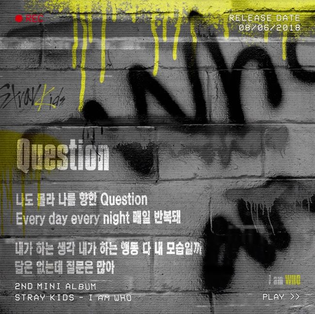 컴백을 5일 앞둔 스트레이 키즈는 타이틀곡 '마이 페이스'를 포함해 새 앨범 '아이 엠 후'에 수록된 신곡 4트랙의 가사 일부를 최초 공개하기도 했다. JYP는 1일 0시 자사 및 스트레이 키즈의 공식 SNS 채널에 신보 '아이 엠 후'의 1번 트랙 'WHO?', 타이틀곡 '마이 페이스', 3번 트랙 '보이시스(Voices)', 4번 트랙 '퀘스천(Question)'의 일부 인스트루멘털 사운드와 가사가 담긴 리릭 카드 티저를 게재했다.