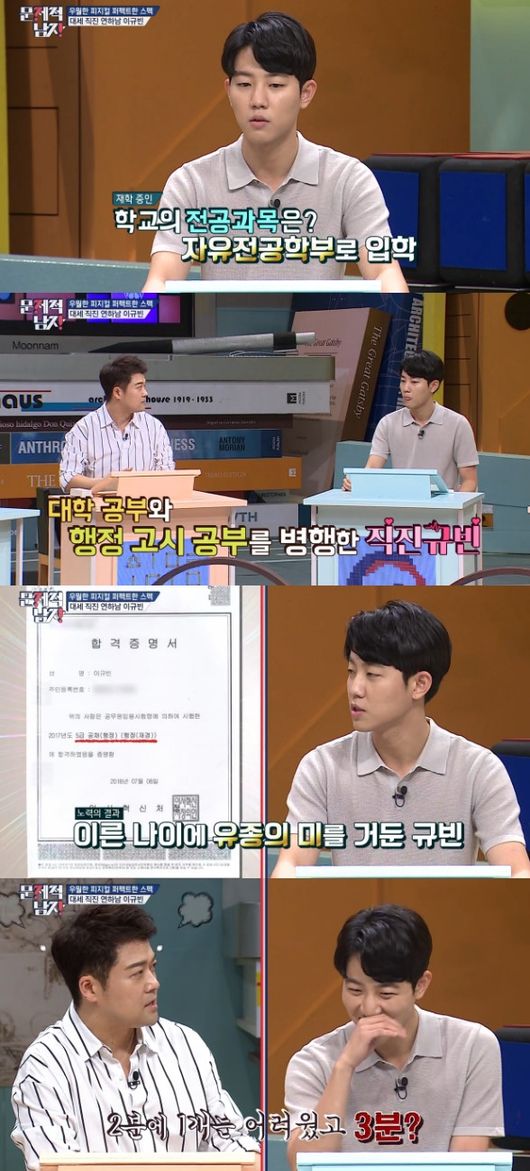 이규빈은 지난 31일 방송된 tvN '문제적 남자'에 출연해 뇌섹남 면모를 자랑했다. 이규빈은 최근 인기리에 종영된 채널A '하트시그널2'에 출연해 '직진 연하남'으로 시청자들의 사랑을 받은 인물이다. '하트시그널2'에서도 이규빈은 서울대에 재학 중이며 5급 행정 고시에 합격했다는 사실을 밝혀 화제를 모은 바 있다.