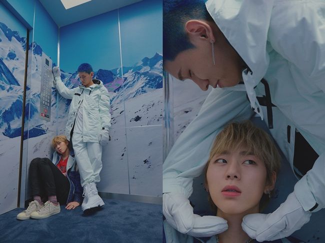 공개된 사진에는 뮤직비디오 속 배경인 엘리베이터 구석에 쪼그려 앉아 있는 지코와 요정을 연상시키는 시스루 날개를 착용하고 기대 서있는 크러쉬가 뾰로퉁한 표정으로 서로의 눈을 마주치고 있다.