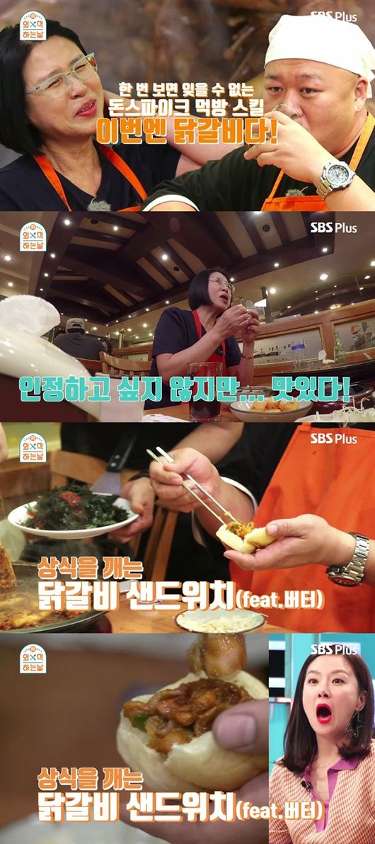 식당에서 돈스파이크는 닭갈비가 적당히 익자 준비해간 샌드위치빵을 꺼내 빵 사이에 닭갈비를 수북히 끼워 넣고 버터까지 첨가해 극강의 닭갈비 샌드위치를 제조해낸 뒤 프로 먹방러의 모습을 선보인다. 처음엔 질색하던 돈스파이크 엄마가 돈스가 직접 제조한 달갈비 샌드위치 맛을 본 뒤 태도가 돌변하는 게 백미. 엄마 신봉희 여사는 “인정하고 싶지 않지만……맛있다”고 말해 본인은 물론, 스튜디오까지 폭소하게 한다.