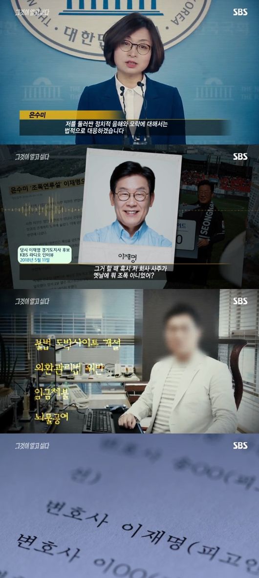 '그것이 알고 싶다' 측은 지난 달 21일 방송에서 이재명의 '성남 국제마피아' 소속 조직폭력배 변호 관련 의혹, 코마 트레이드 이 00 대표의 ‘2016년 성남 중소기업인 대상’ 수상 관련 의혹, 성남 청소년 재단 산하 기관과 조직폭력배가 행정원장으로 근무하던 병원과의 MOU 관련 의혹, 조직폭력배가 본부장으로 재직하던 주차관리 업체와 성남시•성남도시개발공사의 수의 계약 관련 의혹, 조직폭력배 임00가 재직했던 경호업체 관련 의혹 등을 담아냈다.