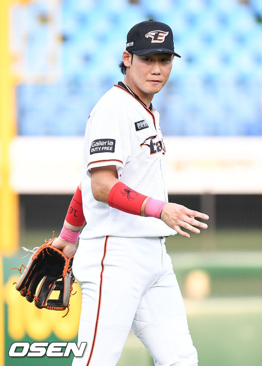 여기서 끝이 아니었다. 무게 중심이 앞으로 넘어가며 한 바퀴 구른 하주석은 다시 1루를 노렸다. 모자가 벗겨진 것도 모른 채 2루수 강경학에게 토스했다. 스타트를 끊은 1루 주자 오태곤을 잡기 위함이었다. 하주석에서 강경학 그리고 1루수 이성열까지 중계 플레이가 이뤄지며 순식간에 더블아웃, 경기종료.