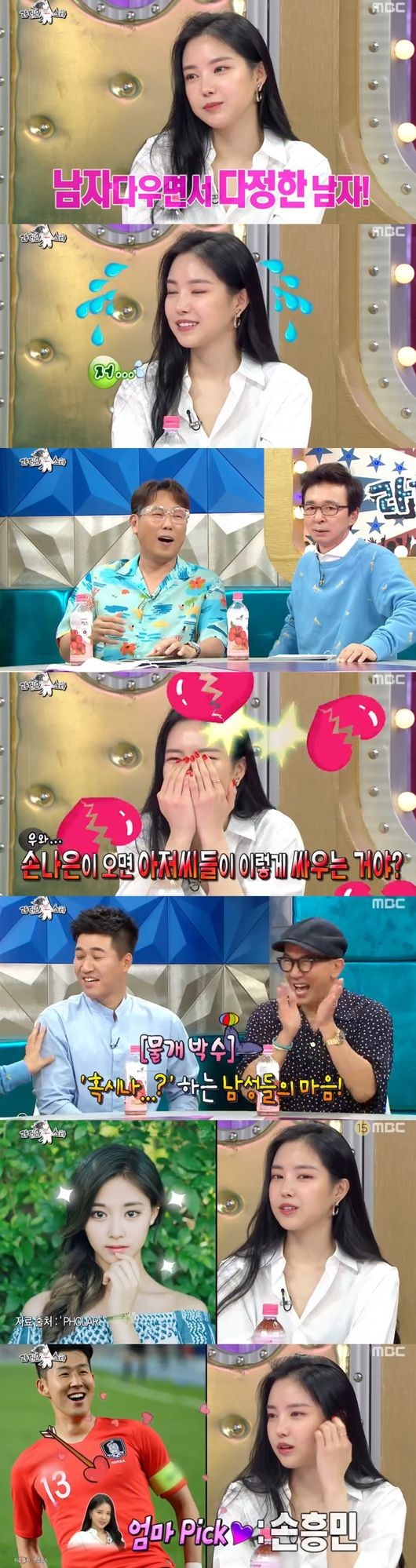 지난 1일 방송된 MBC '라디오스타'는 '얼굴 뜯어먹는 소리하네' 특집으로 꾸며졌고, 각 그룹의 비주얼 센터 김종민, 구준엽, 손나은, 김정훈이 출연했다. 이중 가장 눈에 띈 사람은 단연 홍일점 손나은이었다. 그동안 예능 프로그램에서 자주 볼 수 없었기에 더욱 시선이 집중됐다.