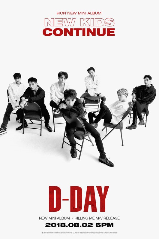 아이콘은 2일 오후 6시 새 미니앨범 'NEW KIDS : CONTINUE'을 발매하고 가요계에 컴백한다. 지난해 5월 발매한 ‘NEW KIDS : BEGIN’, 올해 1월 선보인 ‘RETURN’에 이은 'NEW KIDS'의 3부작 시리즈 완결판으로 타이틀곡 '죽겠다'와 서브 타이틀곡 '바람(FREEDOM)'을 비롯해 'ONLY YOU', '칵테일(COCKTAIL)', '줄게(JUST FOR YOU)'가 수록된다.