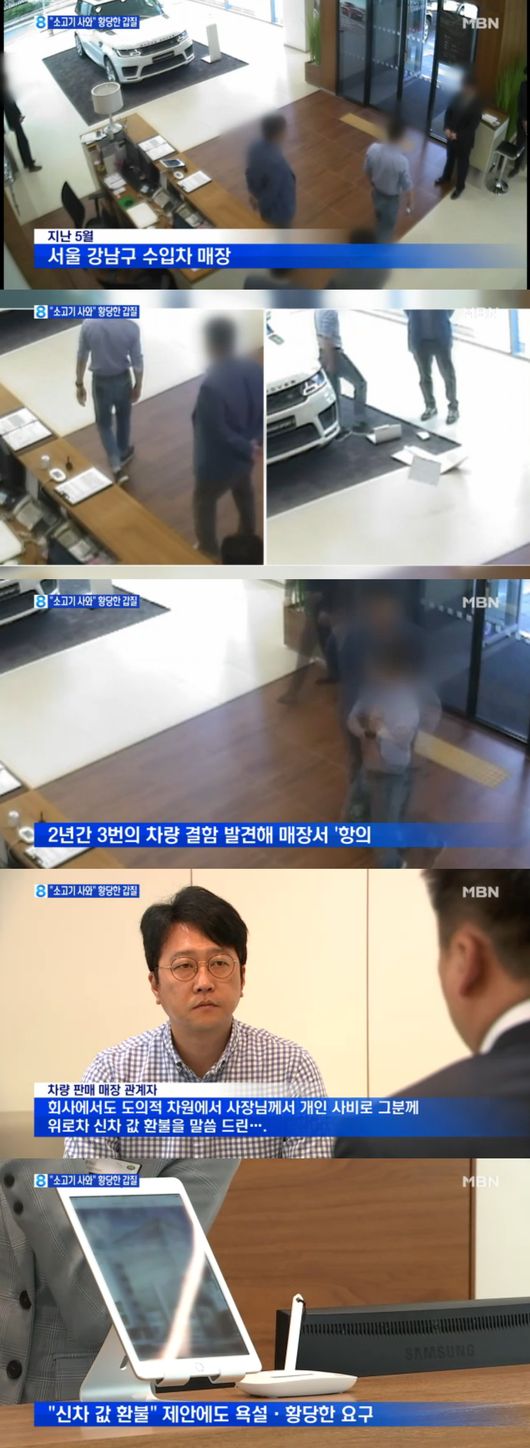 ‘뉴스8’ 보도에 따르면 A씨가 2년 전 구매한 차량에서 2년 동안 세 번의 결함이 발견됐다고. 차량에서 결함이 생기자 격분해 매장을 찾아가 항의했다. 이 과정에서 난동을 부리고 욕설을 했는데 이에 대해 도를 넘었다는 반응과 충분히 그럴 만 하다라는 반응 등 네티즌들의 반응이 분분하다.