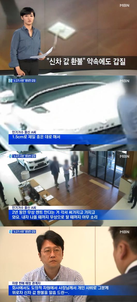 지난 1일 오후 방송된 MBN '뉴스8'에서는 1990년대 인기가수 출신 A씨가 한 수입차 매장에서 항의를 하고 난동을 피우는 모습이 방송 됐다. A씨가 수입차 업체 직원에게 한 폭언 역시도 공개됐다. 수입차 업체 직원은 도를 넘은 항의에 극심한 스트레스를 받고 죽고싶었다고 심경을 전했다.