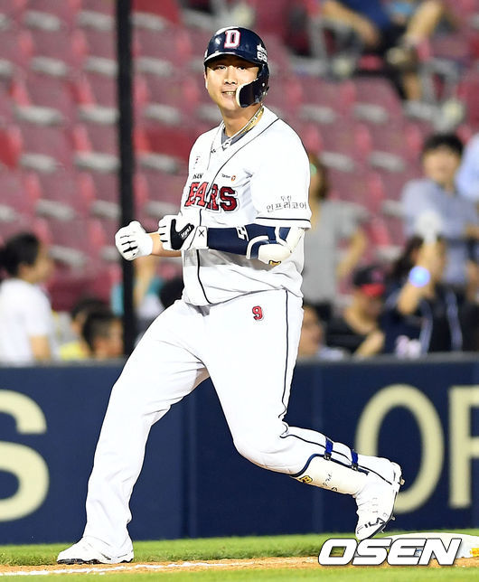양종민은 이후 김재호의 땅볼로 홈에 들어오며 득점까지 성공했다. / bellstop@osen.co.kr