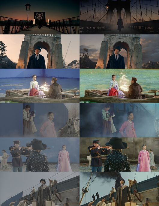 또한 1회에서는 미국에 도착한 어린 유진이 감탄하면서 바라본 미국의 기차와 건물들, 미국 항구의 모습과 유진이 다리 밑에서 댕기 머리를 자르는 장면에서의 바다 풍경 등 어린 유진의 눈에 비친 미국의 모습이 실감나게 담겼던 바 있다. 하지만 이 모든 미국 장면은 미국이 아닌, 국내에서 촬영됐다. 세트와 CG로 ‘역대급 장면’을 완성하면서 극찬을 받았다.