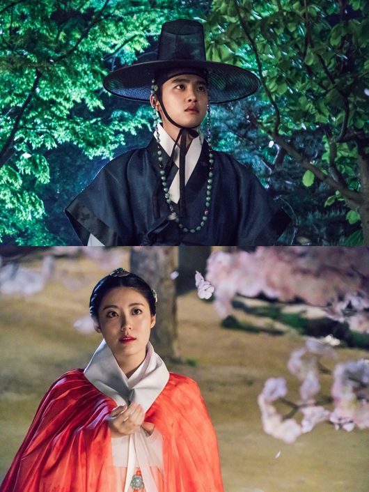 하지만 공개된 스틸컷 속 율과 홍심은 완전무결 왕세자도, 최고령 원녀도 아닌 조선 시대 선비와 양반가 규수의 차림새를 하고 있어 시선을 끈다. 옅은 미소와 다정한 눈길로 꽃을 올려다보는 홍심과 그녀를 바라보고 있는 율. 서로 마주친 것도 아니고, 특별한 대화를 나누지도 않았지만, 그저 같은 벚꽃 아래 서 있는 것만으로도 두 남녀 사이에는 설레는 기류가 오롯이 느껴진다.