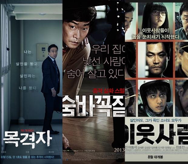 익숙하고 일상적인 공간인 우리집이 가장 두려운 공간으로 변한다는 설정에서 오는 현실을 그린 영화들이 이목을 집중시킨다. 영화 ‘목격자’(2018), ‘숨바꼭질’(2013), ‘이웃사람’(2012)이 그 주인공이다.