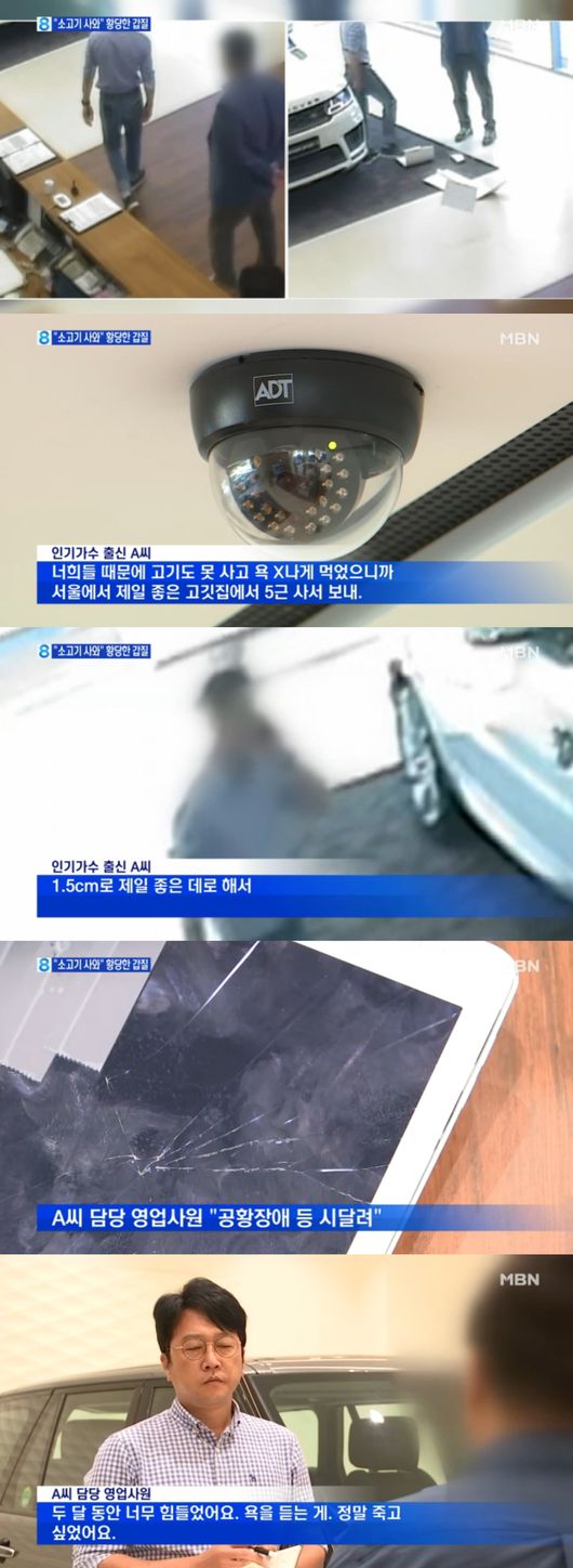 지난 1일 MBN ‘뉴스8’이 90년대 인기가수 A씨의 갑질 영상이라며 A씨가 수입차 매장에서 난동을 부리는 영상을 보도했다. 영상에서 황현민은 매장을 돌아다니며 직원들에게 삿대질을 하고 태블릿PC를 바닥에 내동댕이치고 매장 내 입간판을 발로 차서 부서뜨렸다.