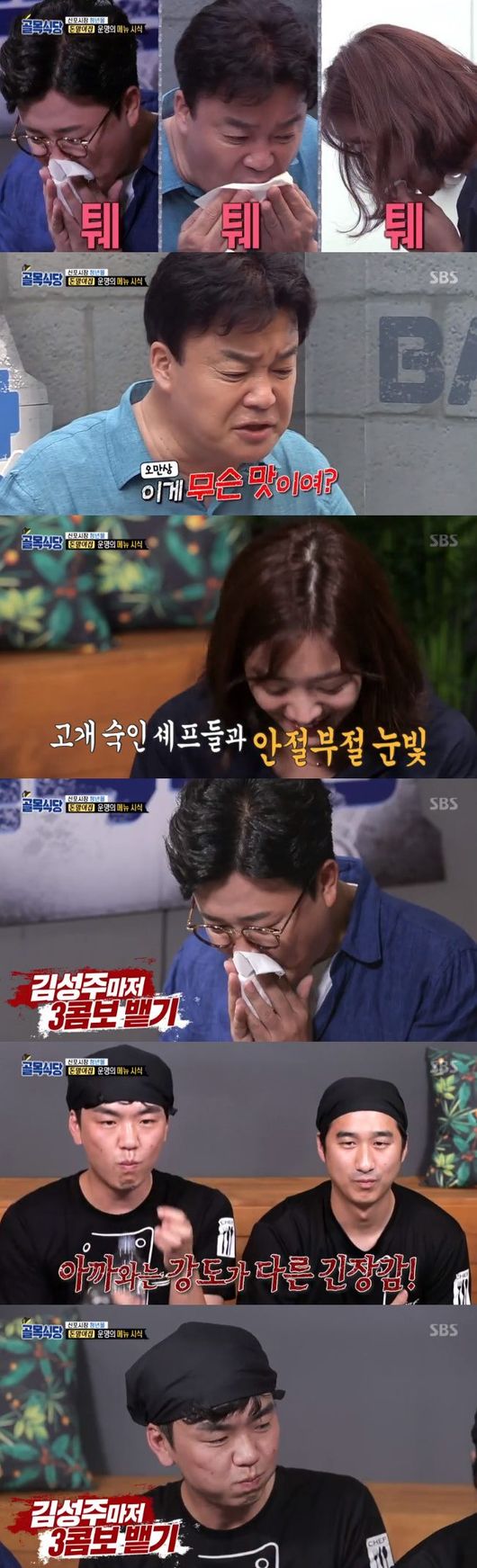 특히 백종원은 제육밥 튀김을 먹다가 "이게 무슨 맛이냐"라며 "뭘 튀겨도 기본은 하는 튀김인데도 돼지고기 냄새 확 올라온다. 튀겨놨는데도 맛이 거지 같으면"이라고 말하며 씹던 음식을 뱉어 충격을 안겼다. 이에 조보아와 김성주도 제육밥 튀김을 먹었고 마찬가지로 삼키지 못하고 뱉어 시선을 모았다.