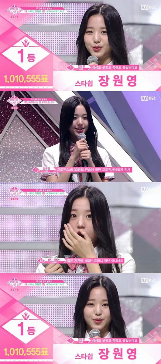 장원영은 이로써 어느새 '프로듀스 48'을 대표하는 얼굴이 됐다. '프로듀스 48'은 방송 전 첫 번째 센터인 미야와키 사쿠라가 주목받았고, 이후 플레디스의 이가은이 줄곧 1등 자리에 오르면서 관심받았다. 장원영은 그룹 배틀 평가전부터 새롭게 주목받는 참가자로 떠오르면서 차츰 순위가 상승해 결국 1등 자리에 앉게됐다.