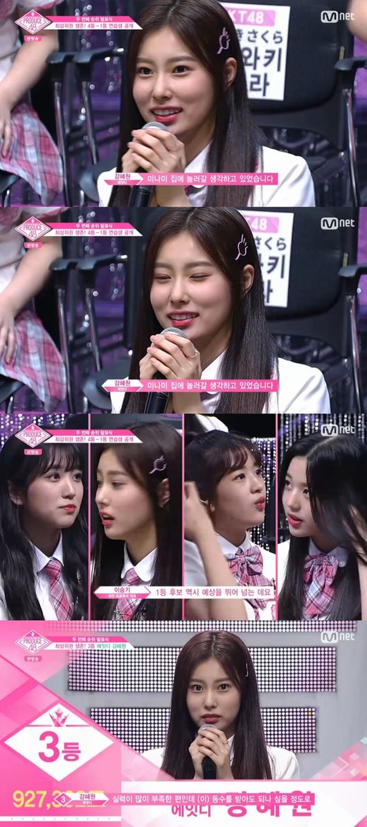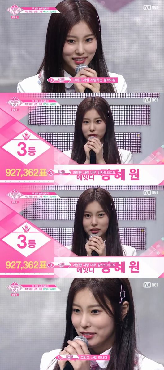 그리고 이들 중에서 가장 주목받은 연습생은 3등에 오른 강혜원이었다. 강혜원은 방송 초반 예쁜 외모로 화제를 모았지만 부족한 실력으로 F등급을 받았던 연습생이었다. 하지만 25등에서 3등으로 순위가 상승되면서 놀라움을 안겼다. 순위 발표식의 큰 재미였다. '프로듀스 48' 드라마의 주인공이 된 셈이다.