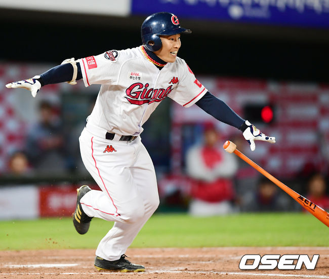 하지만 손아섭은 연이은 최충연의 속구에 그대로 당하지 않았다. 최충연의 149km 속구에 정확히 타이밍을 맞추면서 라인드라이브 타구를 만들었고 유격수 키를 넘어 좌중간으로 빠졌다. 결국 이 타구는 주자 2명을 모두 불러들이는 2타점 역전 2루타로 만들어졌다.