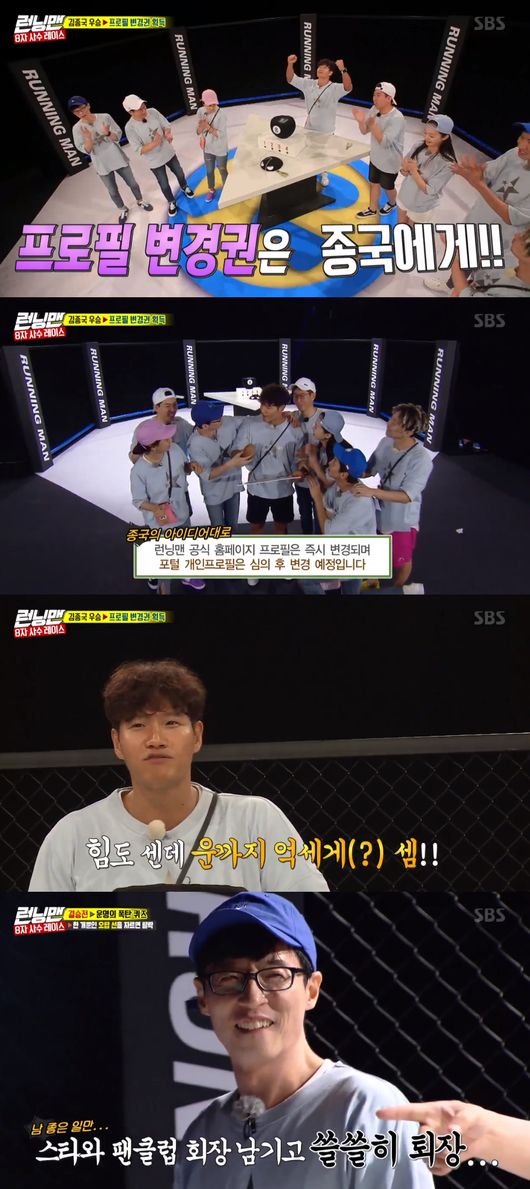 5일 방송된 SBS '런닝맨'에서는 우승자 마음대로 멤버들 포털사이트 프로필을 변경할 수 있는 8자 사수 레이스가 펼쳐졌다.