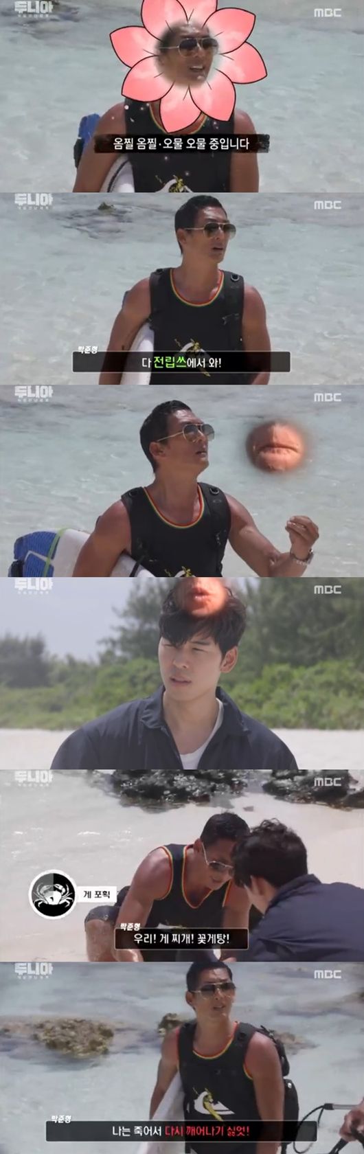 그는 "사람들이 다치고 사람이 죽다 살아났다. 난 죽다 깨어나기 싫다. 죽기 싫다"고 말하며 열정 넘치는 유노윤호를 향한 투정을 드러내기도 했다. 박준형은 "왜 '관찰' 춤을 시키냐"고 목소리를 높였다.
