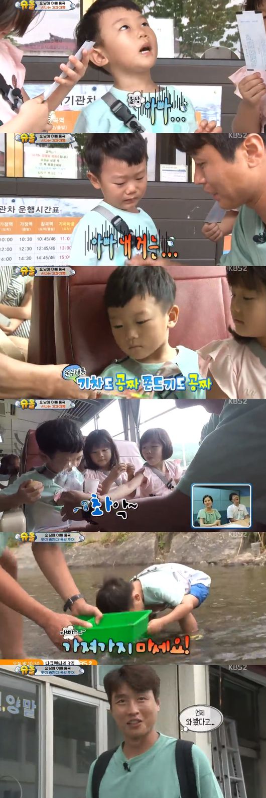 가정역에 도착한 이들은 투어 택시를 타고 곡성을 관광했다. 가장 먼저 한 건 냇가에서 다슬기 잡기. 이동국은 아이들과 다슬기 많이 잡기 내기를 했고 막내 시안을 도와주는 척하면서 아들이 잡은 다슬기를 몰래 빼냈다. 이를 모르는 시안은 잡아도 잡아도 계속 3마리이자 어리둥절했다.