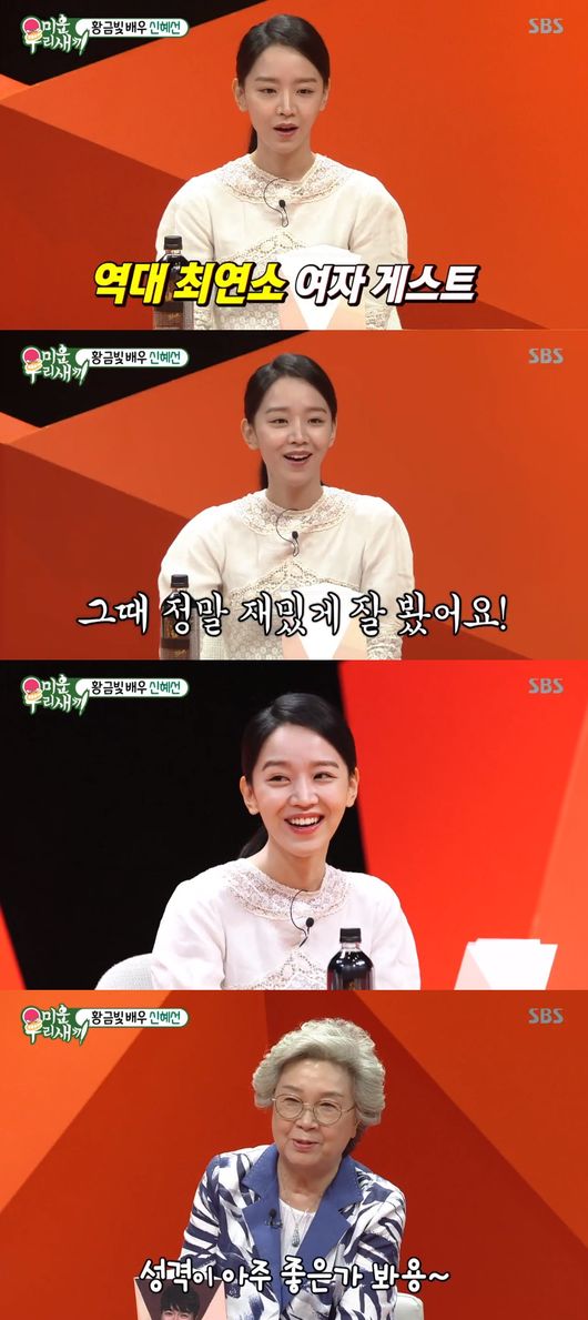 이날 스페셜 MC로는 배우 신혜선이 출연했다. '모벤져스' 어머니들은 신혜선의 등장에 반색했다. 김종국의 어머니는 "(황금빛 내 인생) 얼마나 열심히 봤는데"라며 "나갈 일이 있어도 덜 나갔다. 정말 재밌게 봤다"고 '신혜선 사랑'을 드러냈다.