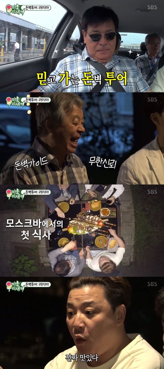 윤정수의 삼촌은 러시아 현지 가이드 같은 노련함을 과시했다. 첫 러시아 여행임에도 입담만큼은 전문 가이드 못지 않았다. 식당 주문에 있어서도 거침 없었다. 윤정수 삼촌의 추천으로 향한 식당에서 네 사람은 러시아에서의 첫 식사를 만족스럽게 즐겼다. /mari@osen.co.kr