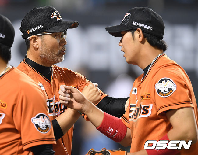 최진행이 3번이나 2군에 내려간 반면 하주석은 개막 후 한 번도 1군에서 제외되지 않았다. 주전 유격수로서 수비 공헌도가 크기 때문이다. 규정타석 타자 중 최저 타율로 떨어진 하주석을 계속 빼지 않자 하주석을 두고 '한용덕 감독의 양아들'이란 소리까지 나오고 있다. 한용덕 감독도 팬들의 원성을 잘 안다.