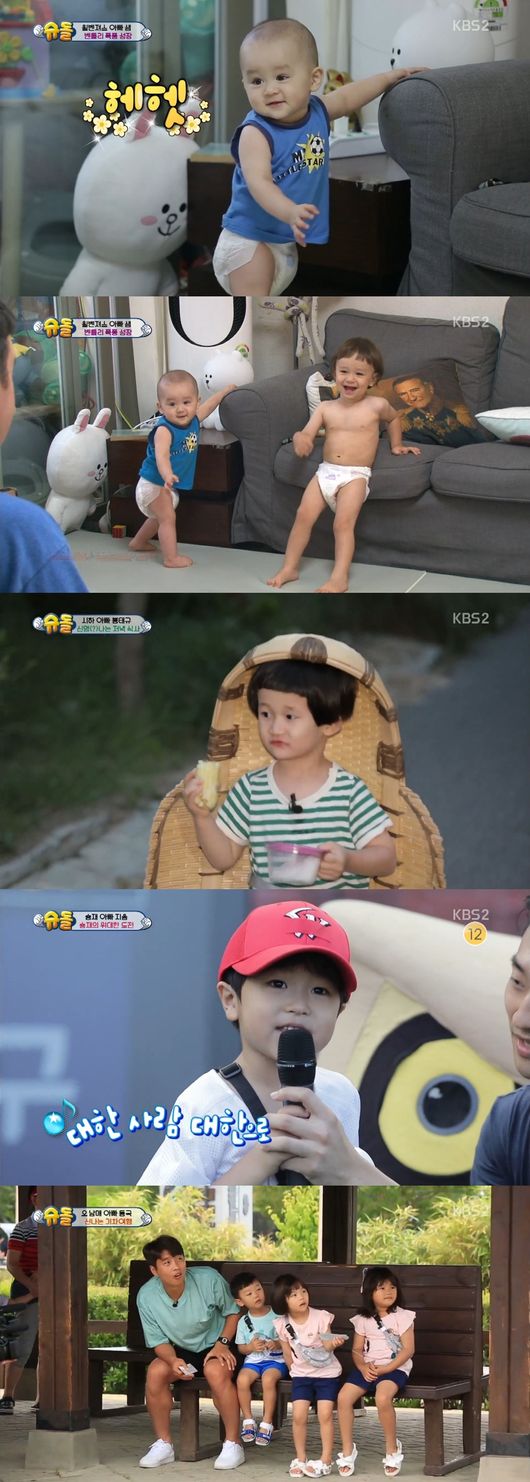 그런가 하면 봉태규-시하 부자는 무의도 갯벌로 여행을 떠났다. 그곳에서 안현수-제인 부녀를 만나 집라인을 타고 갯벌 체험도 하는 등 행복한 추억을 만들었다. 승재는 야구장에서 애국가 제창과 시구에 도전했다. 도전의 아이콘 승재의 새로운 도전은 뭉클함을 안겼다.