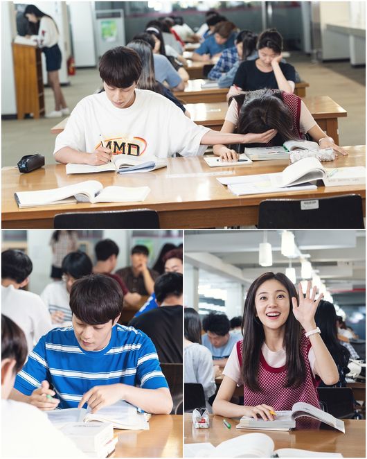 그런 가운데 공개된 사진 속 도서관 자리에 나란히 앉아 열공 중인 두 사람이 단번에 눈길을 끈다. 구대영이 졸다 넘어지는 이지우(백진희 분)의 머리를 받쳐주는 모습이 간질거리는 설렘을 불러오고 있다. 오른손엔 그대로 펜을 쥔 채 왼손으로 지우의 이마가 부딪히지 않게 잡아주는 센스 만점, 심쿵 매너손이 두근두근 여심을 저격할 예정이다.