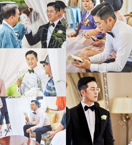 6일 공개된 사진 속 박광현은 무더위 속에서도 흐트러짐 없는 턱시도 차림을 보여주고 있다. 그는 폭염 속에서도 해맑은 미소로 카메라를 응시하는 것은 물론 함께 촬영하는 동료에게 선풍기를 건네는 등 반전 매력 또한 확인할 수 있다.