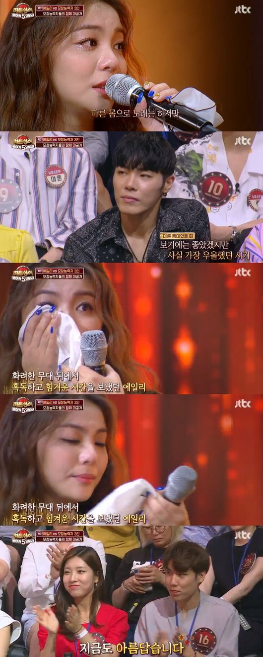 이 말에 에일리는 "저도 다이어트로 10kg을 감량했을 때 정말 힘들었다"며 왈칵 눈물을 쏟았다. 한동안 말을 잇지 못할 정도 그간의 설움을 눈물에 털어냈다. 그는 "하루 종일 안 먹은 상태로 노래했는데 너무 슬펐다. 난 노래하는 가수인데 무대에 서기 위해 어쩔 수 없이 다이어트를 해야하니까"라며 상처 받았던 과거를 떠올렸다.