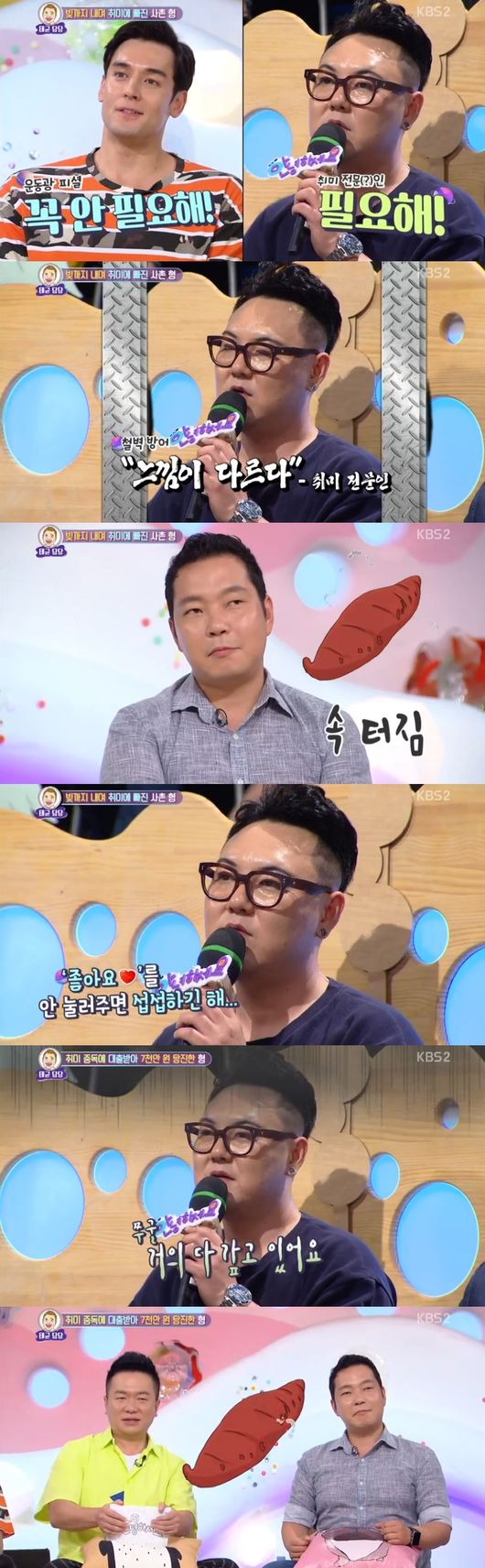 취미 홀릭 형 때문에 고민인 사연의 고민남을 만나봤다. 그는 형의 많은 취미를 말하면서 거의 간만보는 취미 수준이라 했다. 혼자 즐기는 건 문제가 안 돼지만 옆에 있는 사람을 끌어들인다고. 심지어 교통사고로 철심을 박은 주인공을 한 겨울에 등산을 강요했다고. 시도때도 없이 취미를 강요한다고 했다. 게다가 늘어나는 취미일 수록 대출이 쌓인다고 했다. 돈을 벌 수 있는 취미가 아닌 빚까지 내는 것이 문제였다.