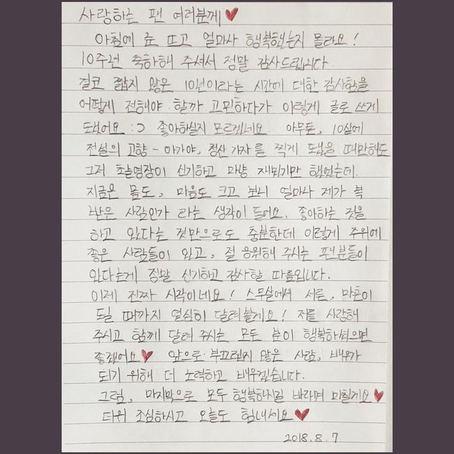 결코 짧지 않은 10년이라는 시간에 대한 감사함을 어떻게 전해야 할까 고민하다가 이렇게 글로 쓰게 됐어요. 좋아하실지 모르겠네요.