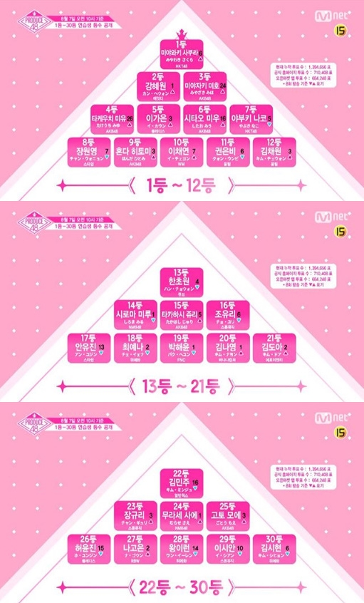 이어 4등 타케우치 미유, 5등 이가은, 6등 시타오 미우, 7등 야부키 나코, 8등 장원영, 9등 혼다 히토미, 10등 이채연, 11등 권은비, 12등 김채원까지가 데뷔권이다. 데뷔권이었던 한초원, 조유리, 안유진 등이 12등 밖으로 순위가 하락했다.