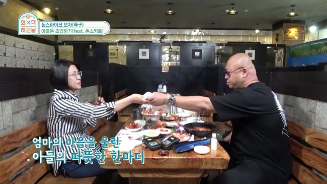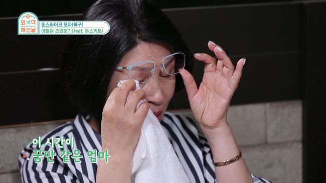 자신을 위해 계속 배려해 주고, 좋아하는 음식을 준비해 준 아들이 너무 고마웠기 때문. 하지만 돈스는 그런 엄마의 눈물에 쑥스러운 듯 서둘러 “라면 추가” 주문으로 감동을 끊으며 웃음을 자아냈다