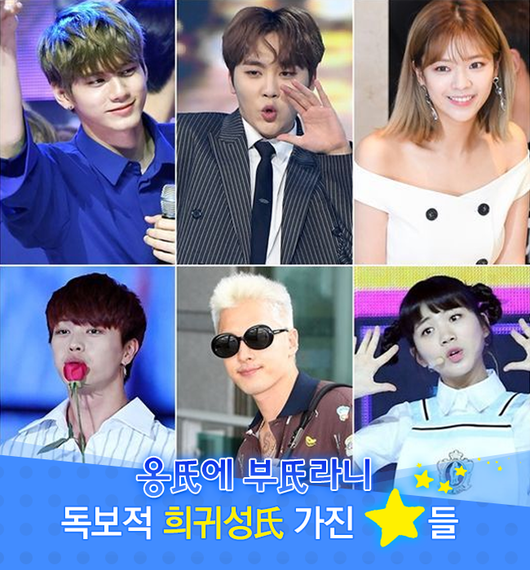 특별해서 더 예쁜 이름을 가진 스타들이 있다. 독보적인 희귀 성 덕분. 예명 아닐까 싶을 정도로 통통 튀는 희귀 성씨를 가진 아이돌 멤버들을 모아봤다. 국내에 몇 없다는 자부심이 '뿜뿜'이다.