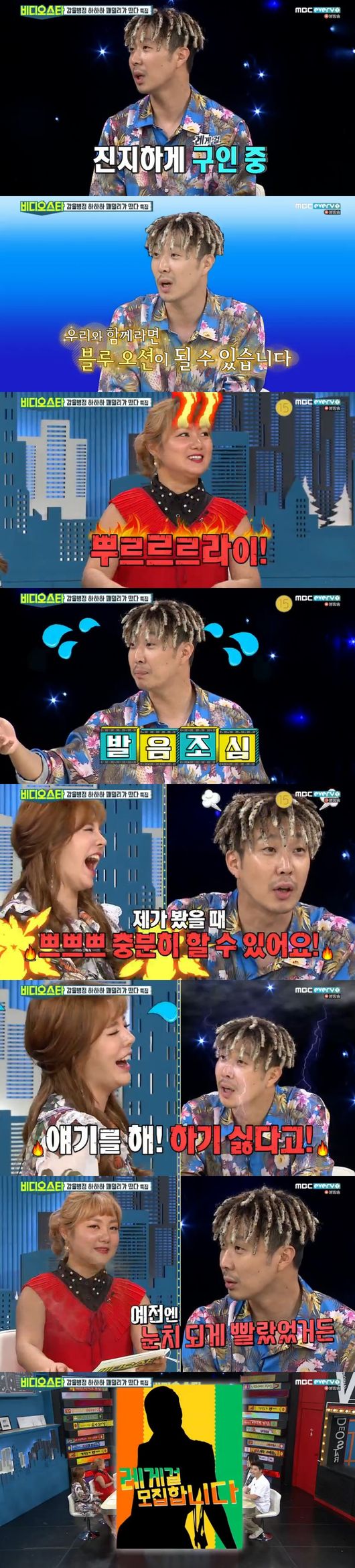 이어 앨범 성공과 발전을 위해 레게걸 영입이 필요하다고 했다. 리쌍의 정인같은 뮤지션을 찾고 있다고 했다. 보컬의 부재가 문제라면서, 공개적으로 레게걸을 모집공고했다. 하하는 "가시밭길 아닌 블루오션, 시작하자마자 함께 활동 가능"면서 진지하게 구인 중이라 했다. 이 분위기를 몰아 즉석에서 미니 오디션을 시작했다. 박나래로 분위기가 몰리자, 하하와 스컬은 걱정의 눈빛을 주고 받아 웃음을 안겼다. 레게사랑부터 넘치는 동료애까지, 의리와 사랑이 넘치는 스컬과 하하였다. 레게강같은 평화로 활동하는 두 사람의 우정은 레게강도 넘쳐흐릴 정도롤 깊었다. /ssu0818@osen.co.kr