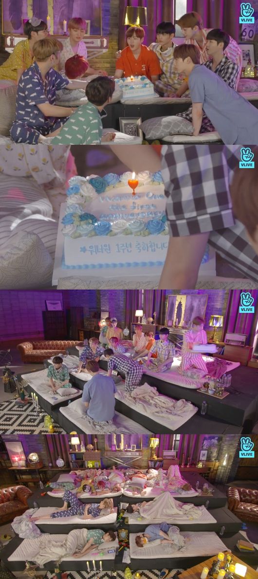 'V라이브' 워너원이 데뷔 1주년을 맞아 눕방 라이브를 통해 팬들을 향한 고마운 마음을 전했다. 이들은 "지나온 시간보다 앞으로 시간이 더 기대된다"며 팬들과 오랜 시간 함께 할 것을 약속했다.