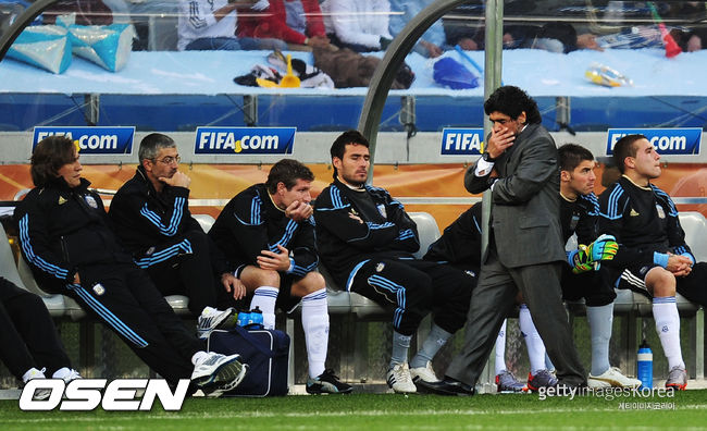 [사진] 2010 남아공 월드컵 독일과 8강전 마라도나. ⓒGettyimages(무단전재 및 재배포 금지)