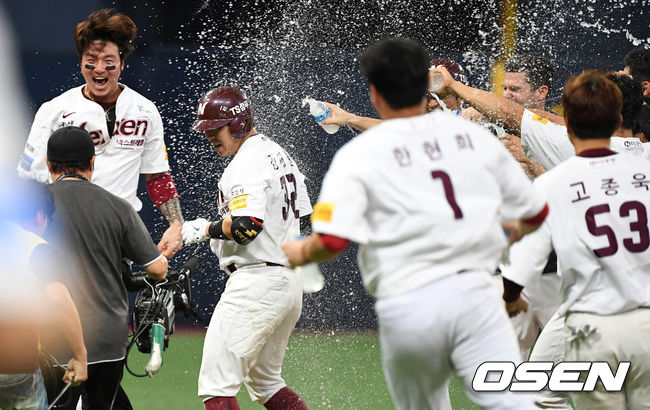넥센은 연장 10회말 김규민이 상대 실책을 틈타 3루까지 갔다. 김재현의 극적인 끝내기 안타가 터져 넥센이 이겼다. 넥센의 방망이가 4위에 오른 원동력이었다. / jasonseo34@osen.co.kr