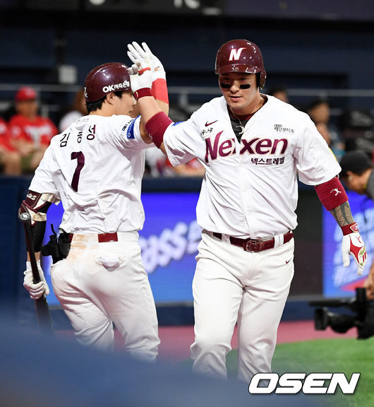넥센은 8일 고척돔에서 벌어진 ‘2018시즌 신한은행 MY CAR KBO리그’ KIA전에서 연장 10회말 터진 김재현의 끝내기 안타로 7-6으로 승리했다. 5연승을 달린 넥센(55승 56패)은 7연패의 LG(53승 55패)를 끌어내리고 4위에 올랐다.