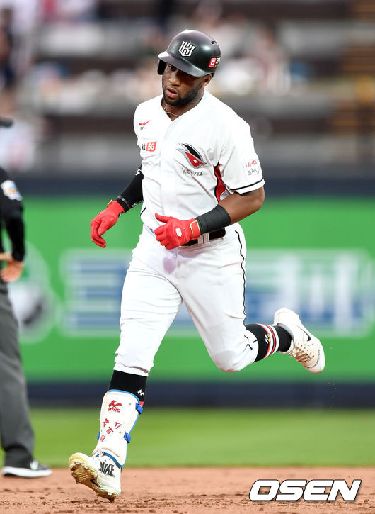 그런데 7월 성적만 보면 로맥보다 뛰어난 선수가 KT 멜 로하스 주니어였다. 로하스는 7월 21경기에서 타율 4할3푼4리 36안타 9홈런 22타점 25득점 6도루를 기록했다. 타율·안타·홈런·득점 외에 출루율(.500)·장타율(.807)까지, 6개 부문에서 월간 1위일 만큼 압도적인 성적이었다.