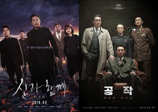 9일 영화진흥위원회에 따르면 '신과함께-인과 연'(김용화 감독)과 '공작'(윤종빈 감독)은 나란히 박스오피스 1, 2위를 차지하며 한국 영화 흥행 양강구도를 이뤘다.