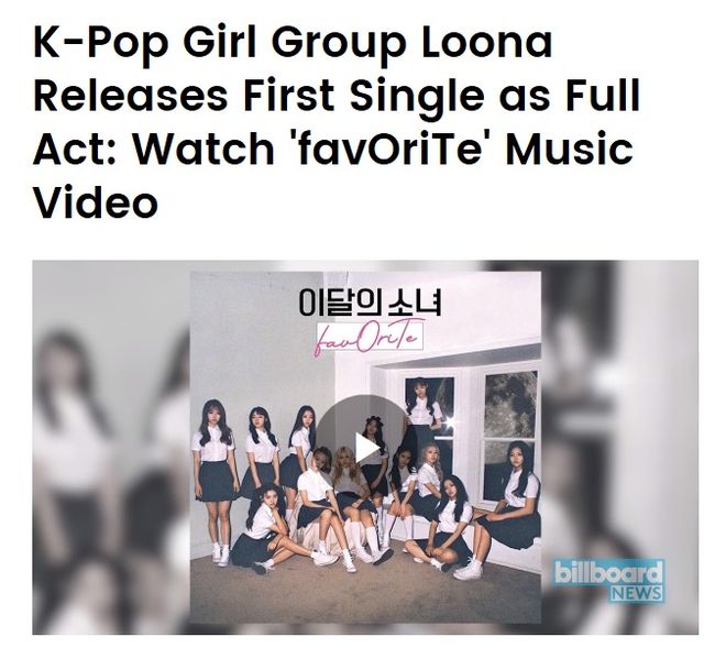 그룹 이달의 소녀(LOONA)가 리드 싱글 '페이보릿'(favOriTe)을 발매한 가운데 미국 음악 전문 매체 빌보드로부터 호평을 받았다.