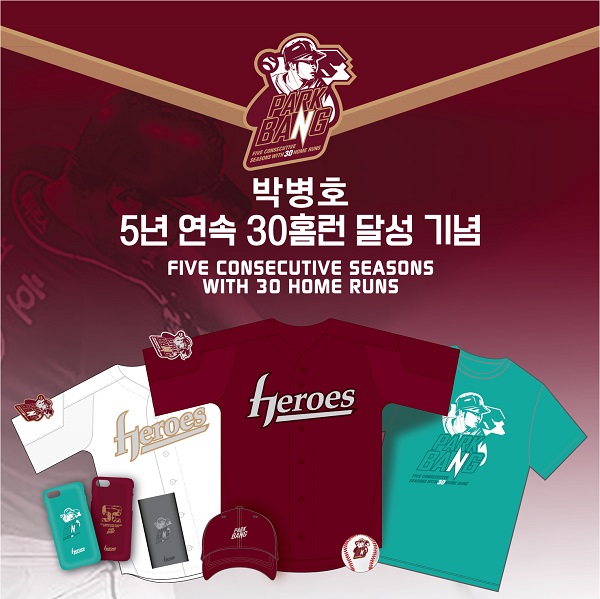 넥센 히어로즈가 박병호 선수의 5년 연속 30홈런 달성을 축하하기 위해 기념상품을 출시한다.