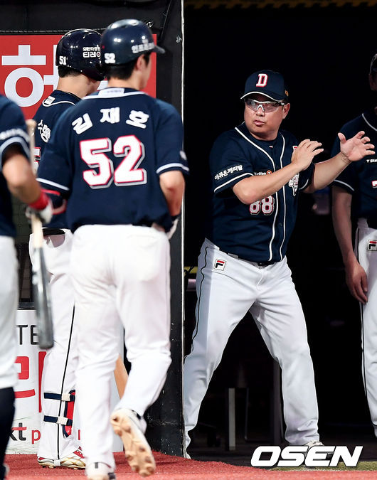 경기를 마친 뒤 김태형 감독은 "김재호가 중요한 순간에 필요한 한 방을 쳐주면서 분위기를 가지고 올 수 있었다. 선발 이용찬은 초반에 고전했지만, 이내 안정을 찾아서 자기 역할을 다해줬다. 뒤에 나온 김강률, 함덕주도 깔끔하게 잘 막아줬다"고 소감을 전했다. / bellstop@osen.co.kr
