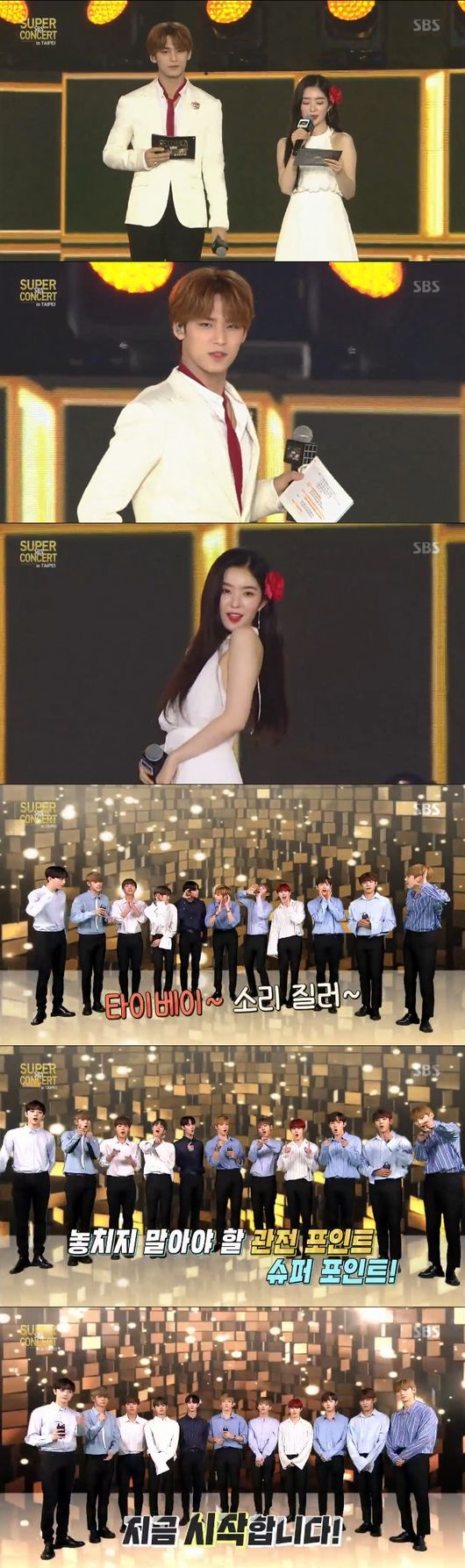 이날 공연은 세븐틴 민규와 레드벨벳 아이린이 진행을 맡은 가운데 워너원이 영상을 통해 스페셜 MC로 깜짝 등장해 ‘슈퍼콘서트’ 무대에 선 6팀의 관전포인트인 슈퍼포인트를 설명해 대만 팬들의 뜨거운 환호를 받았다.