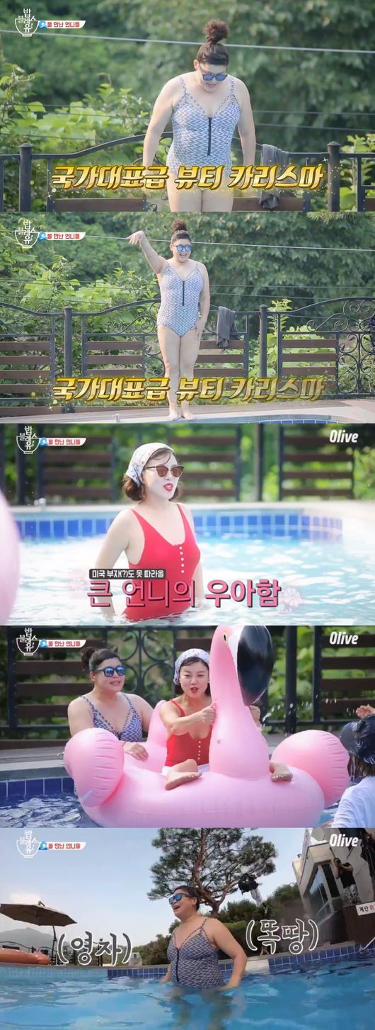 지난 9일 방송된 올리브TV ‘밥블레스유’에서 최화정, 이영자, 송은이, 김숙의 제1회 하계단합대회 현장이 공개됐다. 특히 최화정과 이영자가 당당하게 수영복을 입고 수영을 즐기는 모습이 눈길을 끌었다.