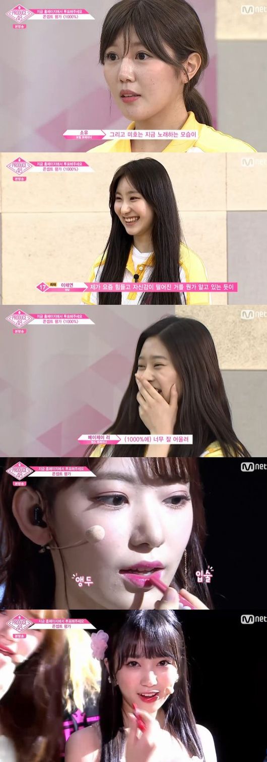 마지막으로 대부분 새 멤버로 구성된 '1000%'에서는 김민주가 첫 센터를, 이채연이 첫 메인보컬을 맡게 됐다. 급하게 팀이 바뀐 이들은 연습량이 부족했음에도 "이 정도면 잘 했다"는 호평을 받았고, 이후 콘셉트 평가 당일이 됐다. 가장 먼저 무대를 꾸미기 위해 등장한 팀은 '루머'였다.